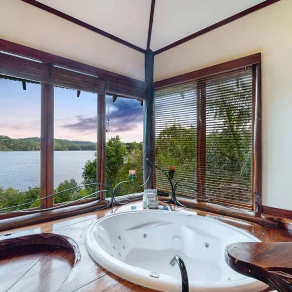 Lizards Lair has an amazing frill-necked lizard carved into its massive front door with a very private balcony overlooking the lake.